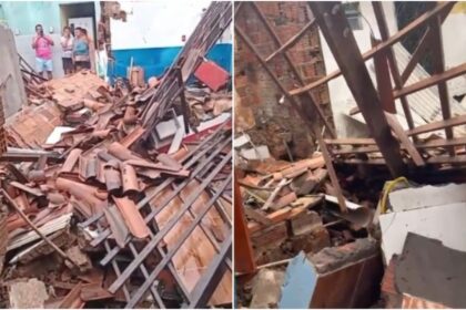 Muro desaba com fortes chuvas, e Defesa Civil interdita casas no Mondubim…