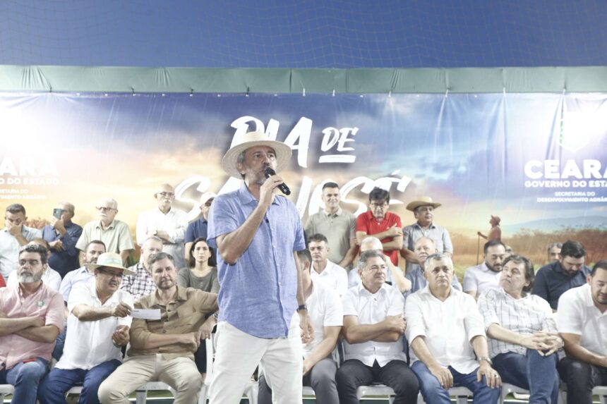 Além da chuva, bom presságio para o inverno, o agricultor cearense teve outros motivos para comemorar, nesta quinta-feira (19), Dia de São José. Em evento comandado pelo governador Elmano de Freitas, na cidade de Várzea Alegre, ações nos eixos de mecanização agrícola; segurança alimentar e acesso ao mercado; água e saneamento; desenvolvimento produtivo e regularização fundiária foram anunciadas para 49 municípios das regiões do Cariri, Centro Sul e Sertão dos Inhamuns. Ao todo, o aporte é superior a R$ 275 milhões. No total, o investimento do Governo do Estado para os eixos visando o desenvolvimento rural será acima de R$ 1,2 bilhão em todo o Ceará.