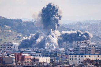 Coluna de fumaça sobe após míssil israelense atingir prédio em Tiro, no…